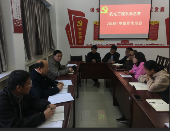 按照公司党委的统一部署和安排,3月27日下午,机电工程系党总支部在系党员活动室召开2018年度组织生活会,同步开展党支部分类定级、民主评议党员工作。系党总支委员和全体党员参加会议,机电工程系行政负责人赵建功与师生代表列席会议。会议由系党总支书记翟迎朝同志主持。